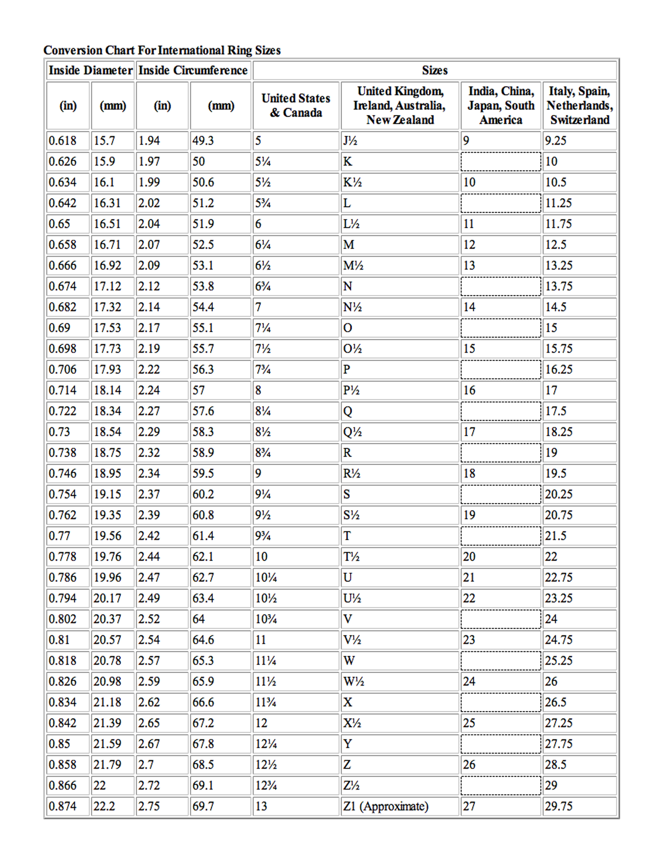 Click Here: Printable Ring Sizer & Conversion Chart PDF